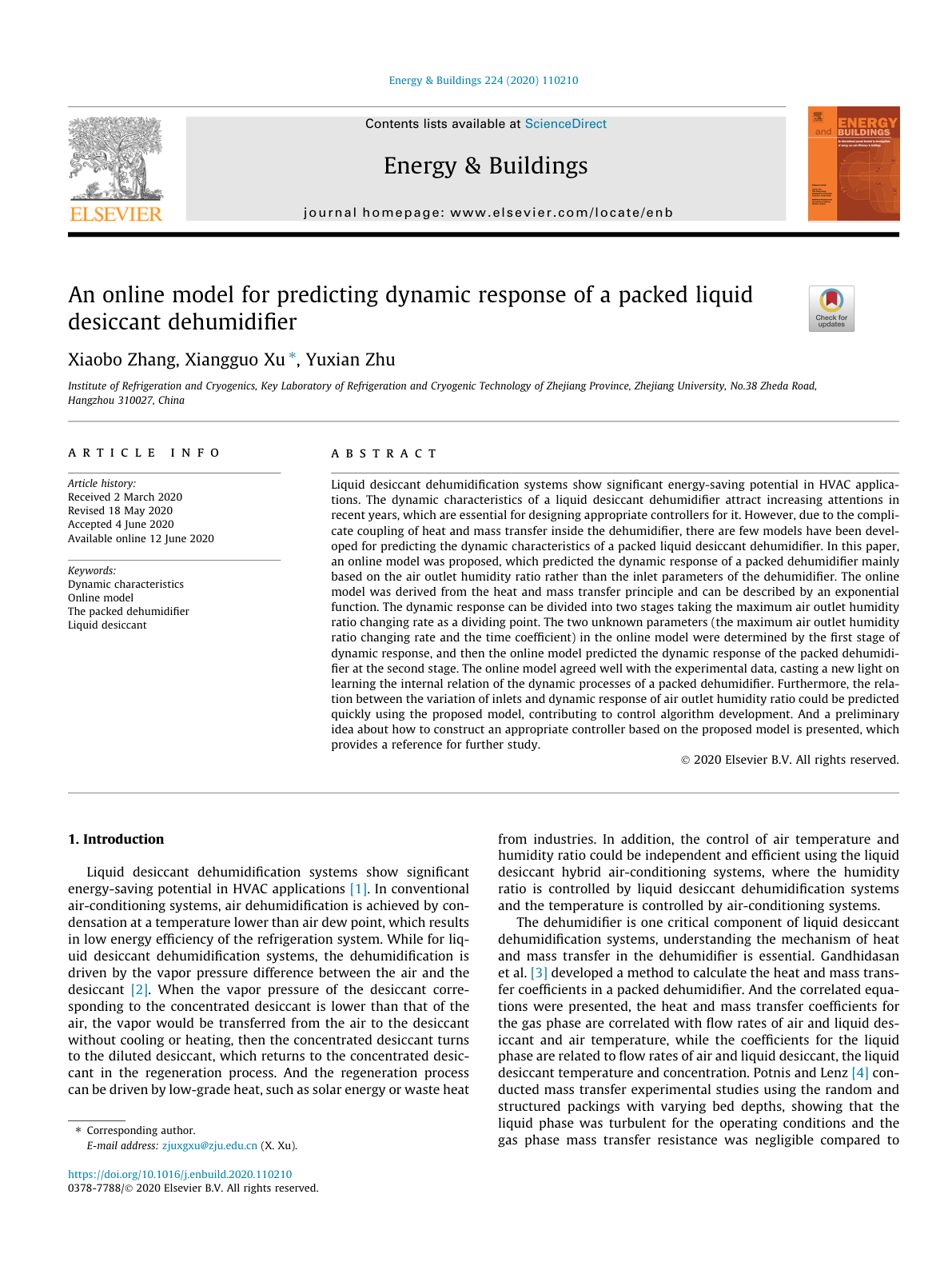 Energy and Buildings, 2020