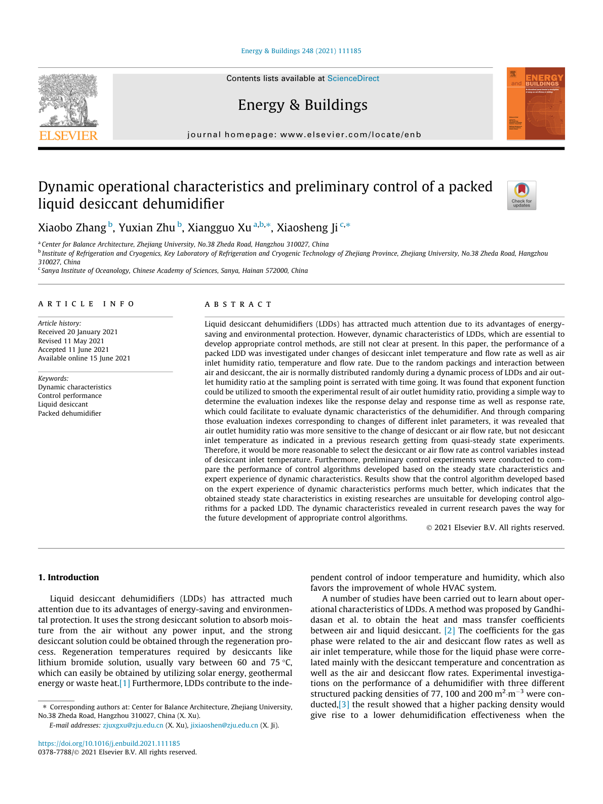 Energy and Buildings, 2021